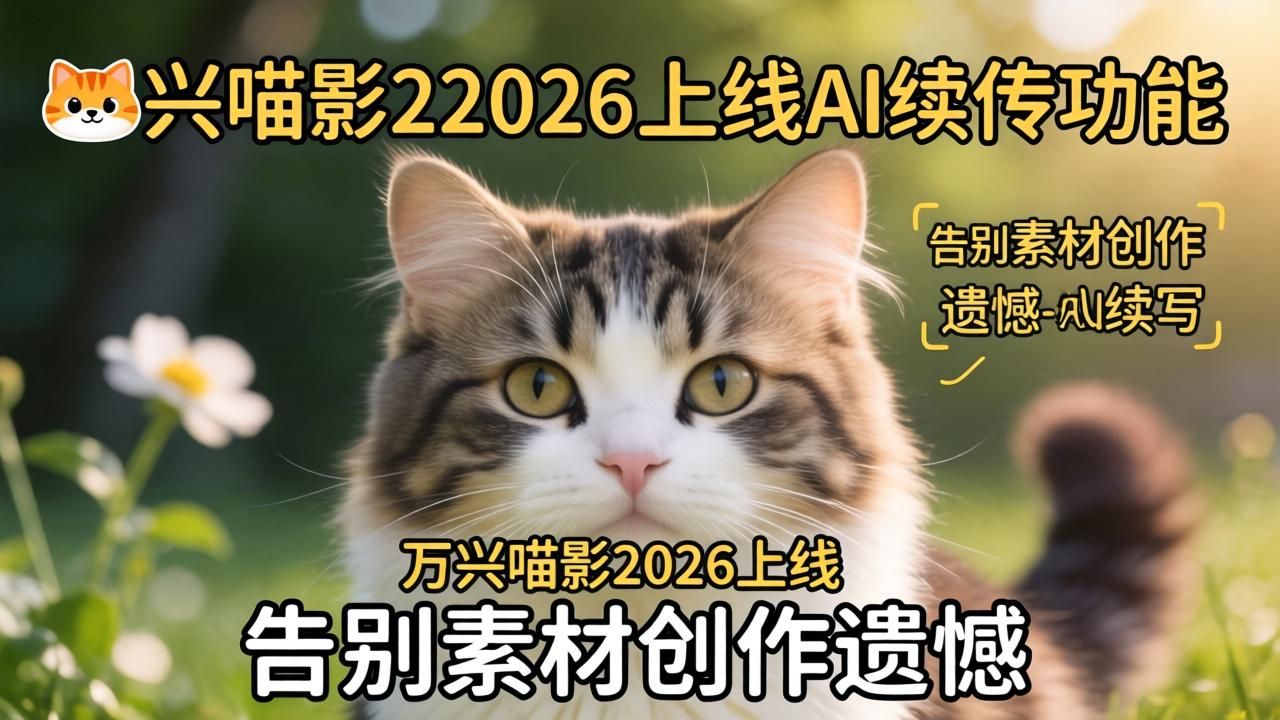 万兴喵影2026上线AI续写功能,告别素材创作遗憾